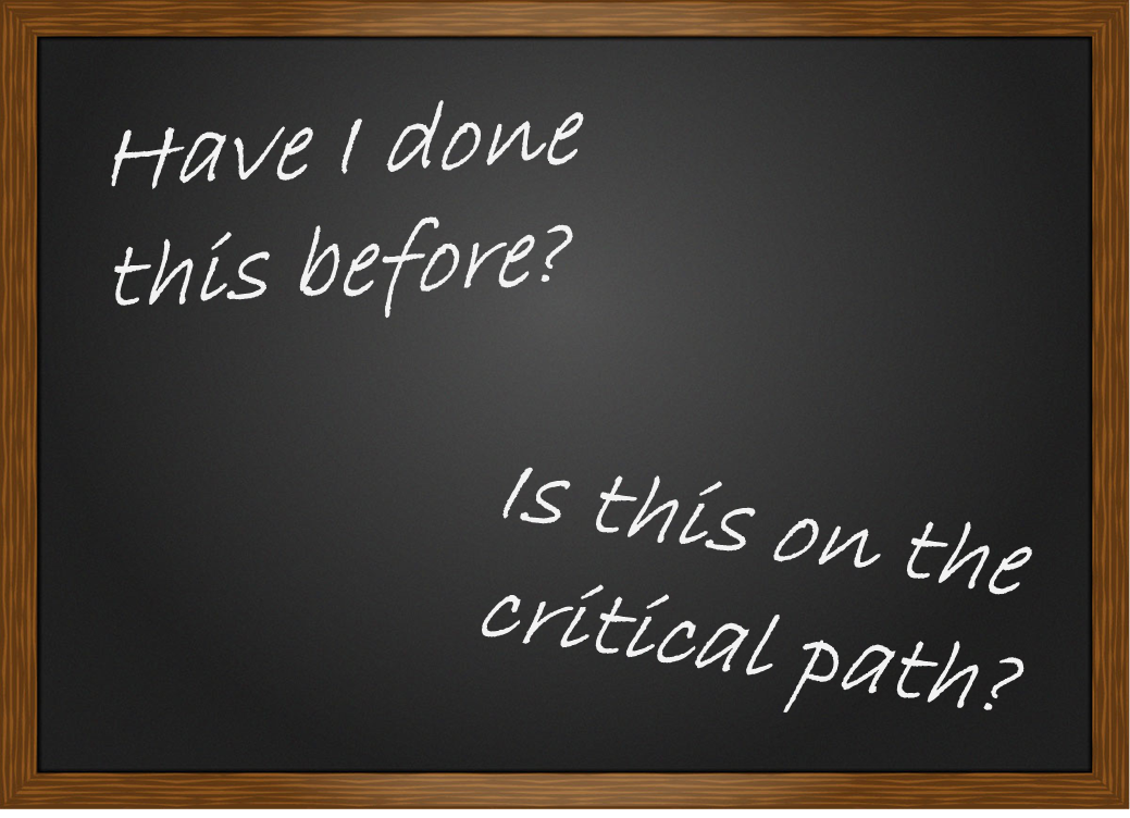 One team I work with identified this problem for themselves and their solution was to put a sign on their task board that said: “Have I done this before?” And another sign that said “Is this on the critical path?”
